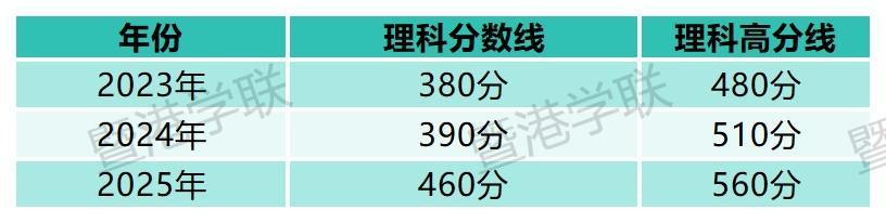 分数线整体涨幅:2023-2025年理科本科线分数线从380分升至460分,高分线从480分升至560分,均上涨80分。