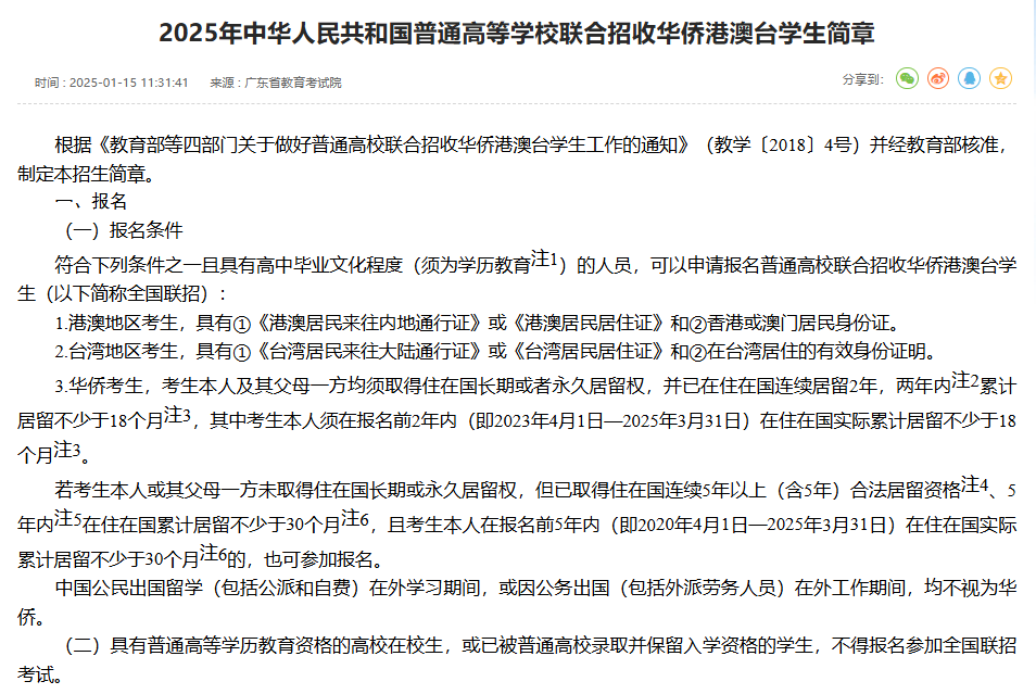 依据2025年港澳台联考官方报名简章,其中对报考条件的表述清晰且完整,但全程未提及“成绩单选科需与报考科目一致”的相关限制。