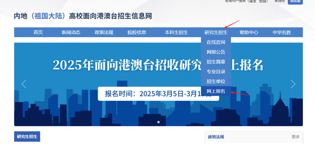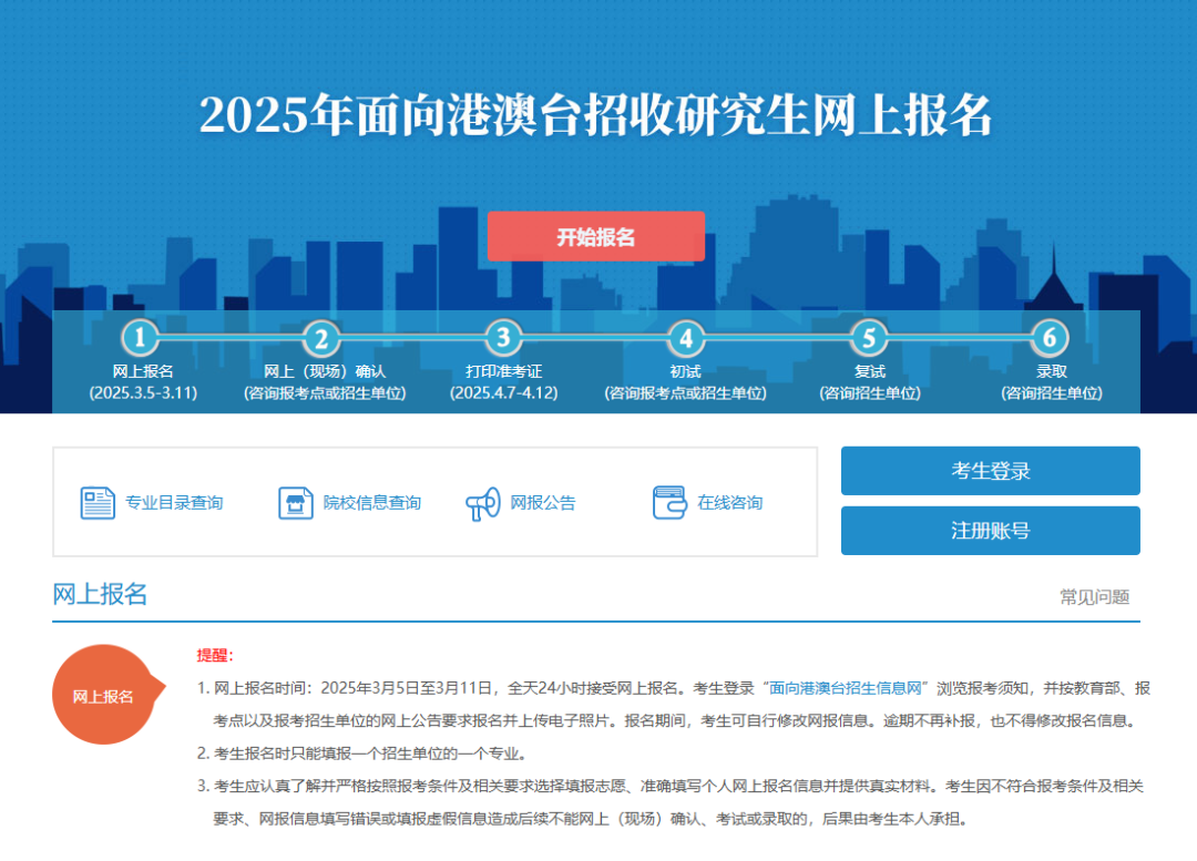无论是哪种考试,网上报名都是关键环节,尤其港澳台研究生招生考试有专属报名通道,步骤需格外注意: