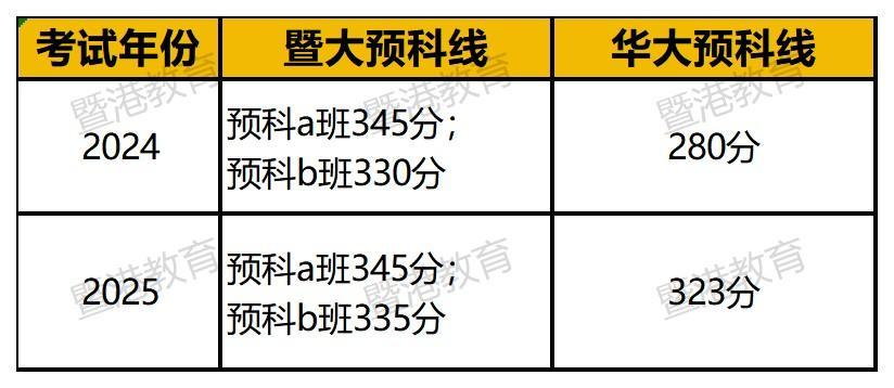 暨南大学预科A班345分,保持不变;