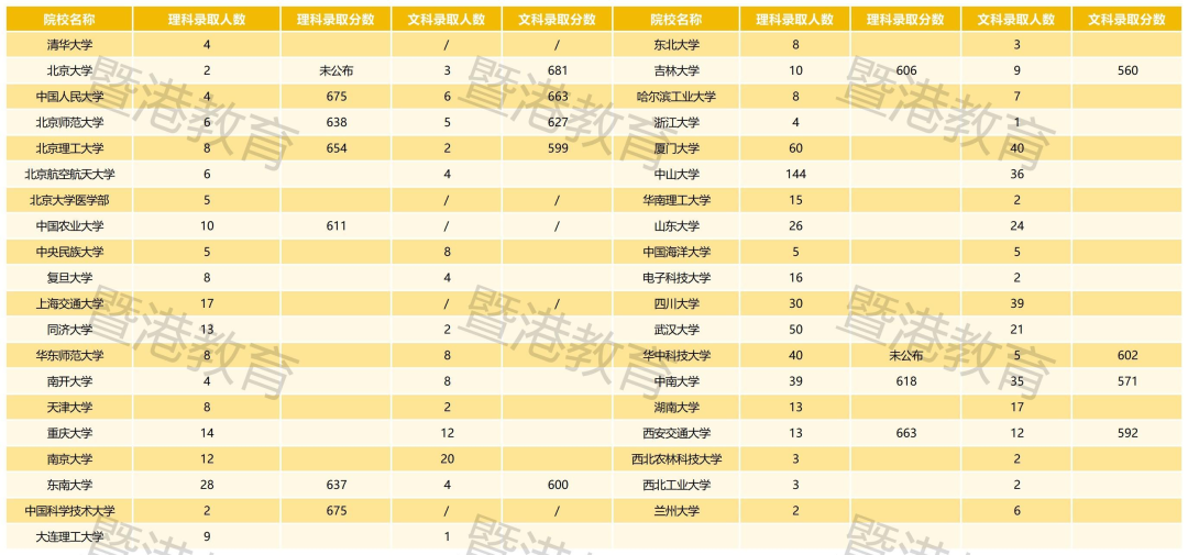 面对39所招收港澳台联考的985高校,我们整理了最新录取数据: