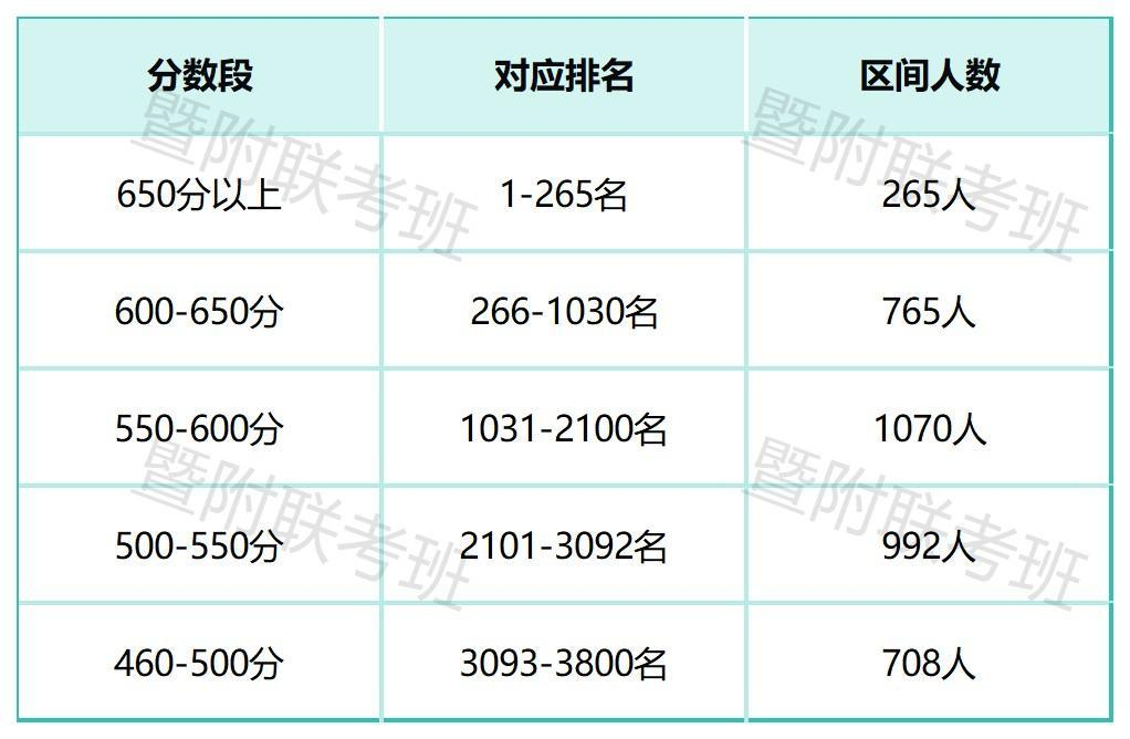 理工类:550-600分区间考生集中,共1070人,排位对应1031-2100名