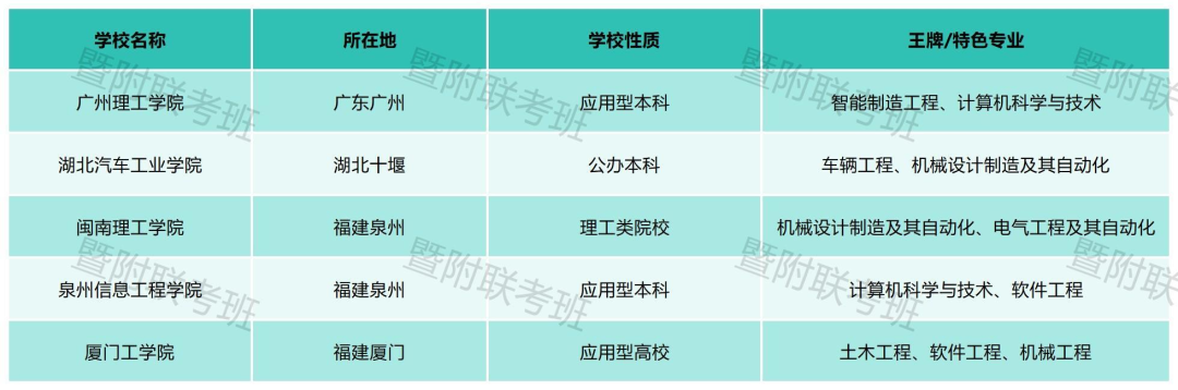 闽南理工学院、泉州信息工程学院、广州理工学院、湖北汽车工业学院和厦门工学院。