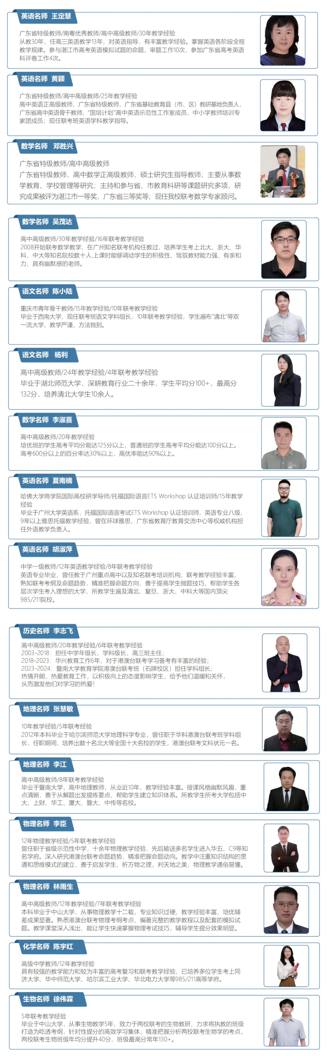 教师团队由特级教师、中学一级教师、海归精英及高校名师组成