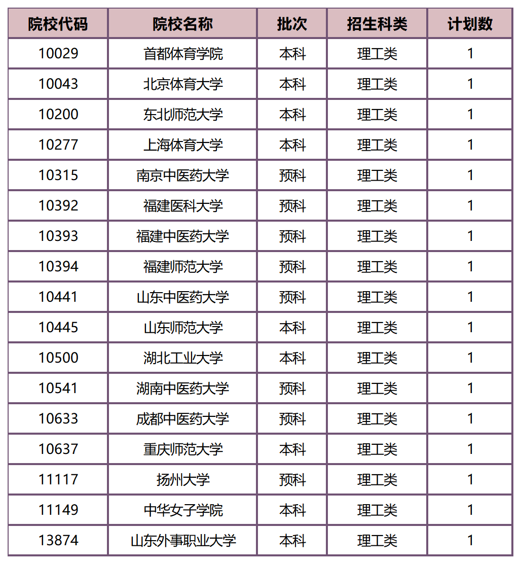 理科单名额院校中医药类和师范类院校占比很高,且预科批次也不少。
