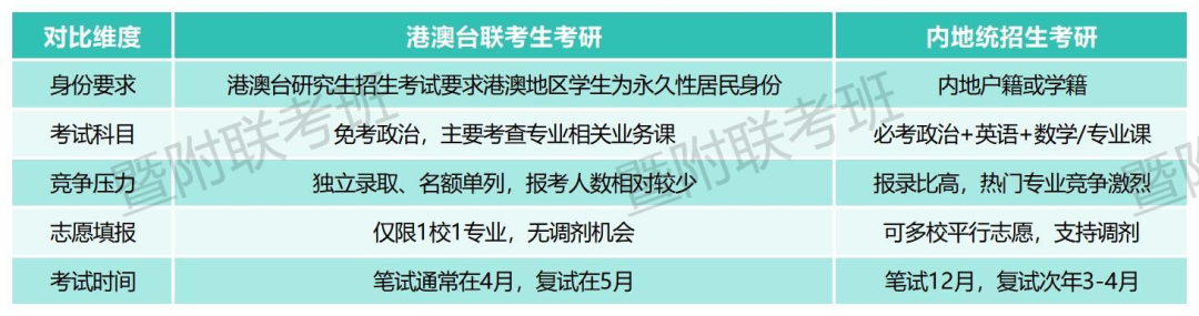 港澳台联考生与内地统招生在考研路径上存在根本性差异。这种差异主要体现在考试途径、竞争压力、考试内容等多个方面。