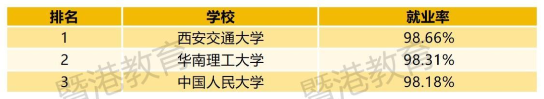 对于港澳台联考学生来说,考上本科院校只是第一步,毕业后的就业保障才是现实考量。而在众多985高校中,就业率高、就业质量优的学校更值得关注。根据最新数据显示,西安交通大学、华南理工大学、中国人民大学位列就业率前三,其中西安交通大学以 98.66%的总体就业率位居榜首。
