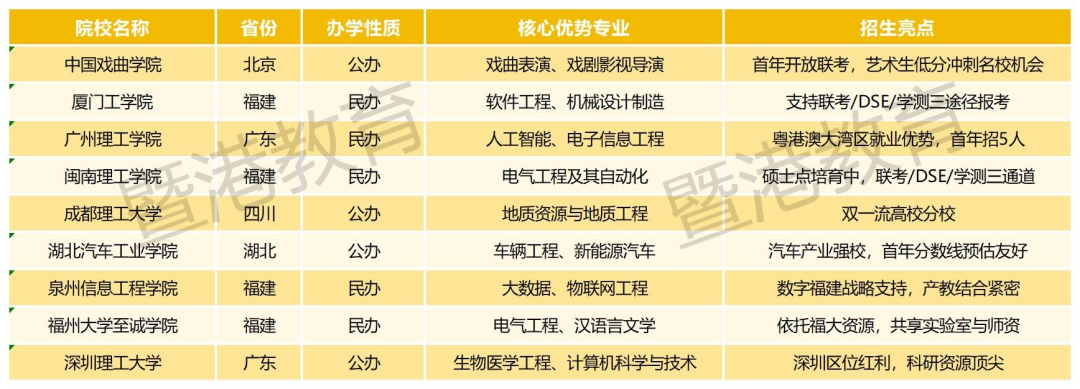 2026年港澳台联考新增9所招生院校,覆盖理工、艺术、经管等多领域,地域分布辐射福建、广东、湖北等省份。