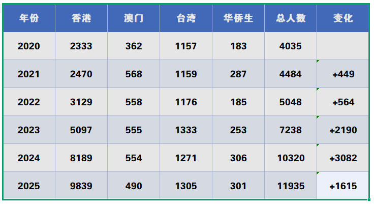 近年来,港澳台联考这一升学途径为更多家长所了解,每年报考人数持续上升。自2023年起,报考人数激增,平均每年涨幅约30%。相较于2024年的增长幅度,2025年涨幅较小。预计2026年考生规模在12000 - 13000人左右,增长幅度渐趋平缓。