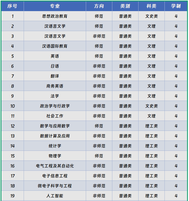 闽南师范大学地处福建省漳州市,拥有本科、硕士、博士完整的人才培养体系,系福建省重点建设高校、福建省“双一流”建设高校、师范教育协同提质计划组团高校、具备推荐免试攻读硕士研究生“农村学校教育硕士师资培养计划”资格的高校,以及国创计划项目与服务国家特殊需求博士人才培养项目实施高校。闽南师范大学依据报考生源状况拟定招生录取计划,其招生专业如下: